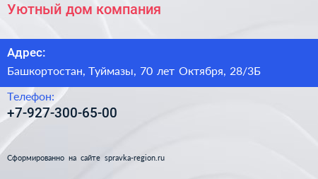 Уютный дом, компания по адресу Башкортостан, Туймазы, 70 лет Октября, 28/3Б в дальнейшем Организация, размещена в следующих категориях: