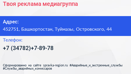 Твоя реклама, медиагруппа по адресу 452751, Башкортостан, Туймазы, Островского, 44 в дальнейшем Организация, размещена в следующих категориях: