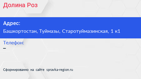 Долина Роз по адресу Башкортостан, Туймазы, Старотуймазинская, 1 к1 в дальнейшем Организация, размещена в следующих категориях: