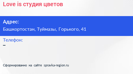 Love is..., студия цветов по адресу Башкортостан, Туймазы, Горького, 41 в дальнейшем Организация, размещена в следующих категориях: