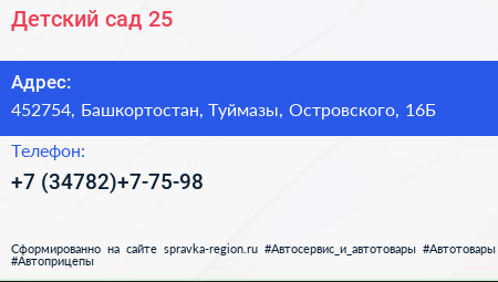 Детский сад №25 по адресу 452754, Башкортостан, Туймазы, Островского, 16Б в дальнейшем Организация, размещена в следующих категориях: