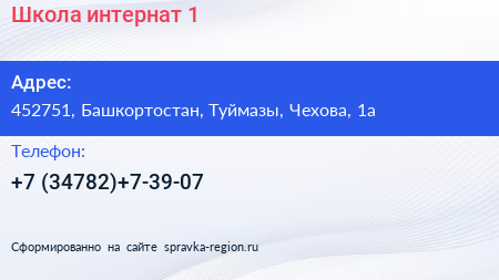 Школа-интернат №1 по адресу 452751, Башкортостан, Туймазы, Чехова, 1а в дальнейшем Организация, размещена в следующих категориях:
