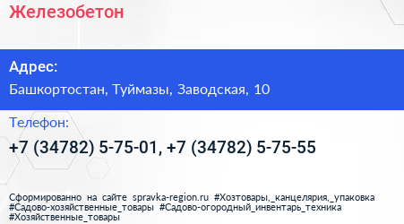 Железобетон по адресу Башкортостан, Туймазы, Заводская, 10 в дальнейшем Организация, размещена в следующих категориях: