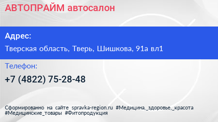 АВТОПРАЙМ, автосалон по адресу Тверская область, Тверь, Шишкова, 91а вл1 в дальнейшем Организация, размещена в следующих категориях: