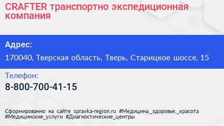 CRAFTER, транспортно-экспедиционная компания по адресу 170040, Тверская область, Тверь, Старицкое шоссе, 15 в дальнейшем Организация, размещена в следующих категориях: