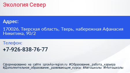 Экология-Север по адресу 170026, Тверская область, Тверь, набережная Афанасия Никитина, 90/2 в дальнейшем Организация, размещена в следующих категориях: