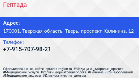 Гептада по адресу 170001, Тверская область, Тверь, проспект Калинина, 12 в дальнейшем Организация, размещена в следующих категориях:
