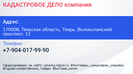 КАДАСТРОВОЕ ДЕЛО, компания по адресу 170008, Тверская область, Тверь, Волоколамский проспект, 11 в дальнейшем Организация, размещена в следующих категориях: