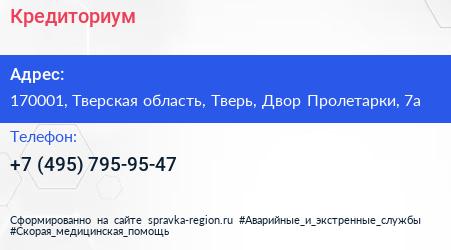 Кредиториум по адресу 170001, Тверская область, Тверь, Двор Пролетарки, 7а в дальнейшем Организация, размещена в следующих категориях: