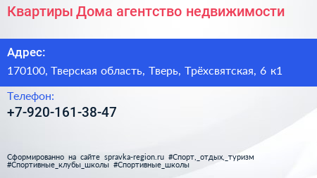 Квартиры & Дома, агентство недвижимости по адресу 170100, Тверская область, Тверь, Трёхсвятская, 6 к1 в дальнейшем Организация, размещена в следующих категориях: