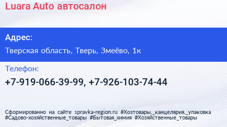 Luara-Auto, автосалон по адресу Тверская область, Тверь, Змеёво, 1к в дальнейшем Организация, размещена в следующих категориях: