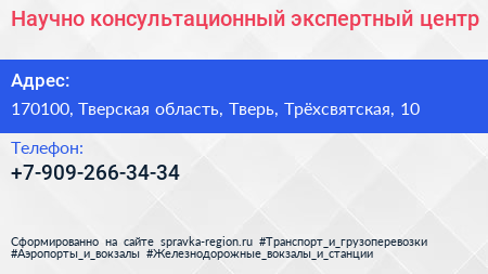 Научно-консультационный экспертный центр по адресу 170100, Тверская область, Тверь, Трёхсвятская, 10 в дальнейшем Организация, размещена в следующих категориях: