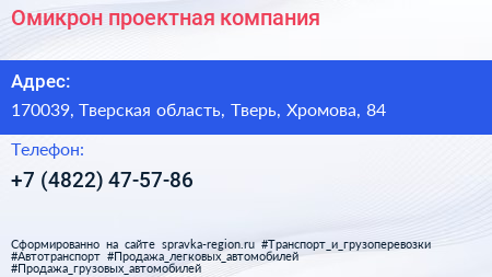 Омикрон, проектная компания по адресу 170039, Тверская область, Тверь, Хромова, 84 в дальнейшем Организация, размещена в следующих категориях: