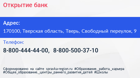 Открытие, банк по адресу 170100, Тверская область, Тверь, Свободный переулок, 9 в дальнейшем Организация, размещена в следующих категориях: