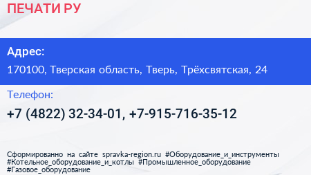 ПЕЧАТИ.РУ по адресу 170100, Тверская область, Тверь, Трёхсвятская, 24 в дальнейшем Организация, размещена в следующих категориях: