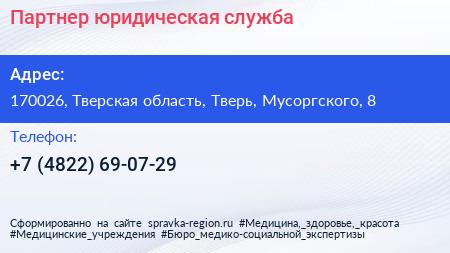 Партнер, юридическая служба по адресу 170026, Тверская область, Тверь, Мусоргского, 8 в дальнейшем Организация, размещена в следующих категориях: