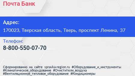 Почта Банк по адресу 170023, Тверская область, Тверь, проспект Ленина, 37 в дальнейшем Организация, размещена в следующих категориях: