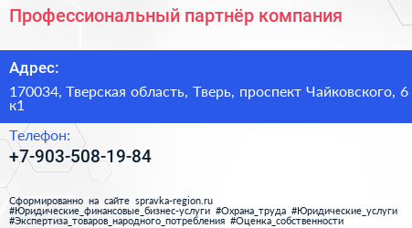 Профессиональный партнёр, компания по адресу 170034, Тверская область, Тверь, проспект Чайковского, 6 к1 в дальнейшем Организация, размещена в следующих категориях: