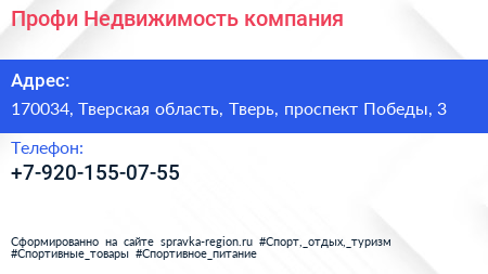 Профи-Недвижимость, компания по адресу 170034, Тверская область, Тверь, проспект Победы, 3 в дальнейшем Организация, размещена в следующих категориях: