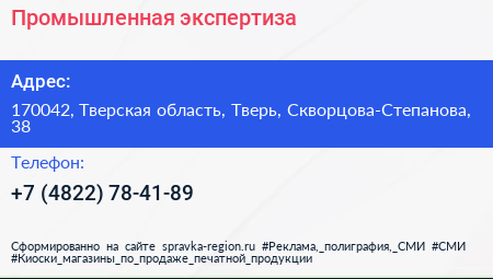 Промышленная экспертиза по адресу 170042, Тверская область, Тверь, Скворцова-Степанова, 38 в дальнейшем Организация, размещена в следующих категориях: