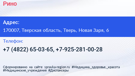 Рино по адресу 170007, Тверская область, Тверь, Новая Заря, 6 в дальнейшем Организация, размещена в следующих категориях: