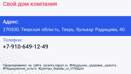 Свой дом, компания по адресу 170100, Тверская область, Тверь, бульвар Радищева, 40 в дальнейшем Организация, размещена в следующих категориях: