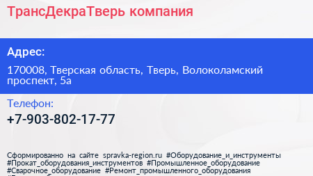 ТрансДекраТверь, компания по адресу 170008, Тверская область, Тверь, Волоколамский проспект, 5а в дальнейшем Организация, размещена в следующих категориях: