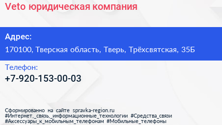 Veto, юридическая компания по адресу 170100, Тверская область, Тверь, Трёхсвятская, 35Б в дальнейшем Организация, размещена в следующих категориях: