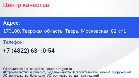 Центр качества по адресу 170100, Тверская область, Тверь, Московская, 82 ст1 в дальнейшем Организация, размещена в следующих категориях: