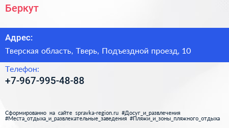Беркут по адресу Тверская область, Тверь, Подъездной проезд, 10 в дальнейшем Организация, размещена в следующих категориях: