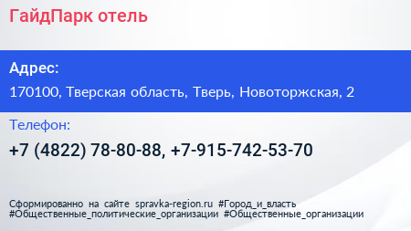 ГайдПарк, отель по адресу 170100, Тверская область, Тверь, Новоторжская, 2 в дальнейшем Организация, размещена в следующих категориях: