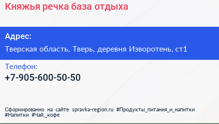 Княжья речка, база отдыха по адресу Тверская область, Тверь, деревня Изворотень, ст1 в дальнейшем Организация, размещена в следующих категориях: