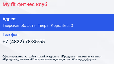 My fit, фитнес-клуб по адресу Тверская область, Тверь, Королёва, 3 в дальнейшем Организация, размещена в следующих категориях:
