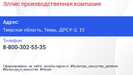 Элпис, производственная компания по адресу Тверская область, Тверь, ДРСУ-2, 15 в дальнейшем Организация, размещена в следующих категориях: