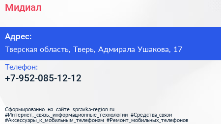 Мидиал по адресу Тверская область, Тверь, Адмирала Ушакова, 17 в дальнейшем Организация, размещена в следующих категориях: