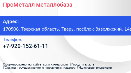 ПроМеталл, металлобаза по адресу 170508, Тверская область, Тверь, посёлок Заволжский, 14в в дальнейшем Организация, размещена в следующих категориях: