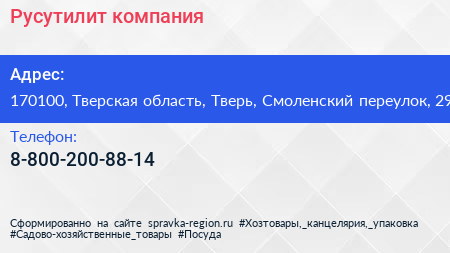 Русутилит, компания по адресу 170100, Тверская область, Тверь, Смоленский переулок, 29 в дальнейшем Организация, размещена в следующих категориях: