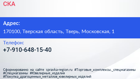 СКА по адресу 170100, Тверская область, Тверь, Московская, 1 в дальнейшем Организация, размещена в следующих категориях: