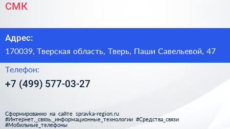 СМК по адресу 170039, Тверская область, Тверь, Паши Савельевой, 47 в дальнейшем Организация, размещена в следующих категориях: