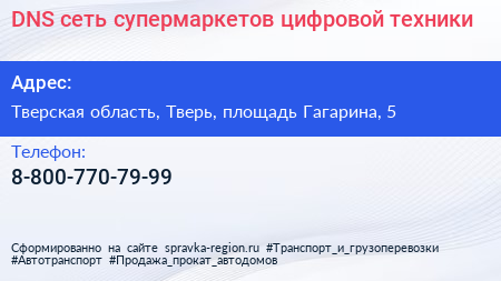 DNS, сеть супермаркетов цифровой техники по адресу Тверская область, Тверь, площадь Гагарина, 5 в дальнейшем Организация, размещена в следующих категориях: