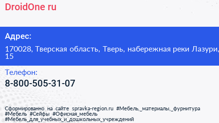 DroidOne.ru по адресу 170028, Тверская область, Тверь, набережная реки Лазури, 15 в дальнейшем Организация, размещена в следующих категориях: