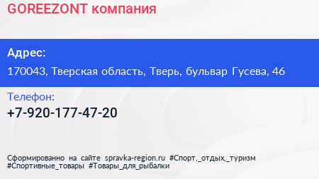 GOREEZONT, компания по адресу 170043, Тверская область, Тверь, бульвар Гусева, 46 в дальнейшем Организация, размещена в следующих категориях: