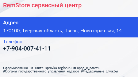 RemStore, сервисный центр по адресу 170100, Тверская область, Тверь, Новоторжская, 14 в дальнейшем Организация, размещена в следующих категориях: