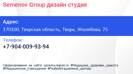 Semenov Group, дизайн-студия по адресу 170100, Тверская область, Тверь, Желябова, 75 в дальнейшем Организация, размещена в следующих категориях: