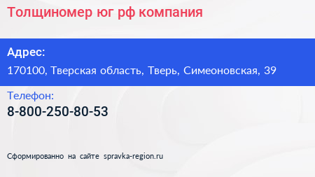 Толщиномер-юг.рф, компания по адресу 170100, Тверская область, Тверь, Симеоновская, 39 в дальнейшем Организация, размещена в следующих категориях: