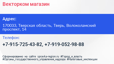 Векторком, магазин по адресу 170033, Тверская область, Тверь, Волоколамский проспект, 14 в дальнейшем Организация, размещена в следующих категориях: