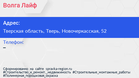 Волга Лайф по адресу Тверская область, Тверь, Новочеркасская, 52 в дальнейшем Организация, размещена в следующих категориях:
