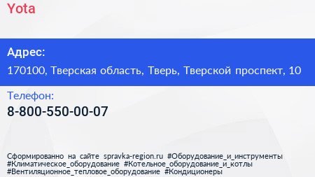 Yota по адресу 170100, Тверская область, Тверь, Тверской проспект, 10 в дальнейшем Организация, размещена в следующих категориях: