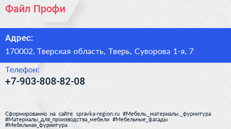 Файл Профи по адресу 170002, Тверская область, Тверь, Суворова 1-я, 7 в дальнейшем Организация, размещена в следующих категориях: