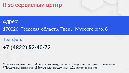 Riso, сервисный центр по адресу 170026, Тверская область, Тверь, Мусоргского, 8 в дальнейшем Организация, размещена в следующих категориях: